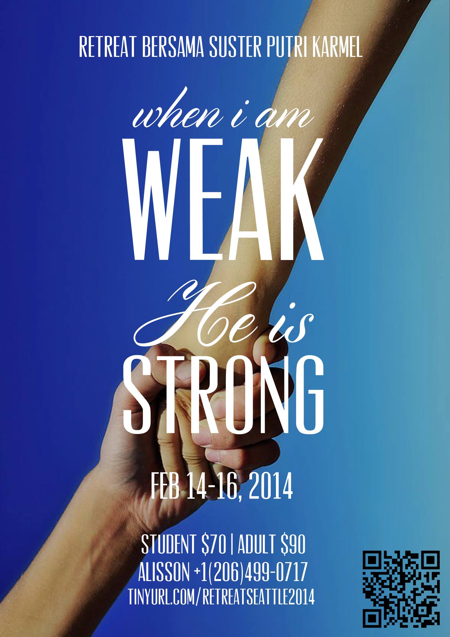 Jumat-Minggu, Feb 14-16, 2014 – Retret di Seattle 2014: “WHEN I AM WEAK, HE IS STRONG!” Retret Mengatasi Kelemahan. (lihat attachment flyer).